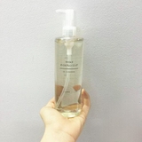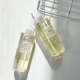 - Thiết kế: Chai nhựa trong suốt in chữ xám tối giản, chất dầu màu vàng nhạt, nhìn cảm giác trong veo rất dễ chịu. Đi kèm là vòi bơm và chốt chặn thường thấy ở dầu tẩy trang Nhật. Trên thân chai có in các vạch 100, 200ml khá tiện lợi để theo dõi mức độ dùng dầu ra sao.
