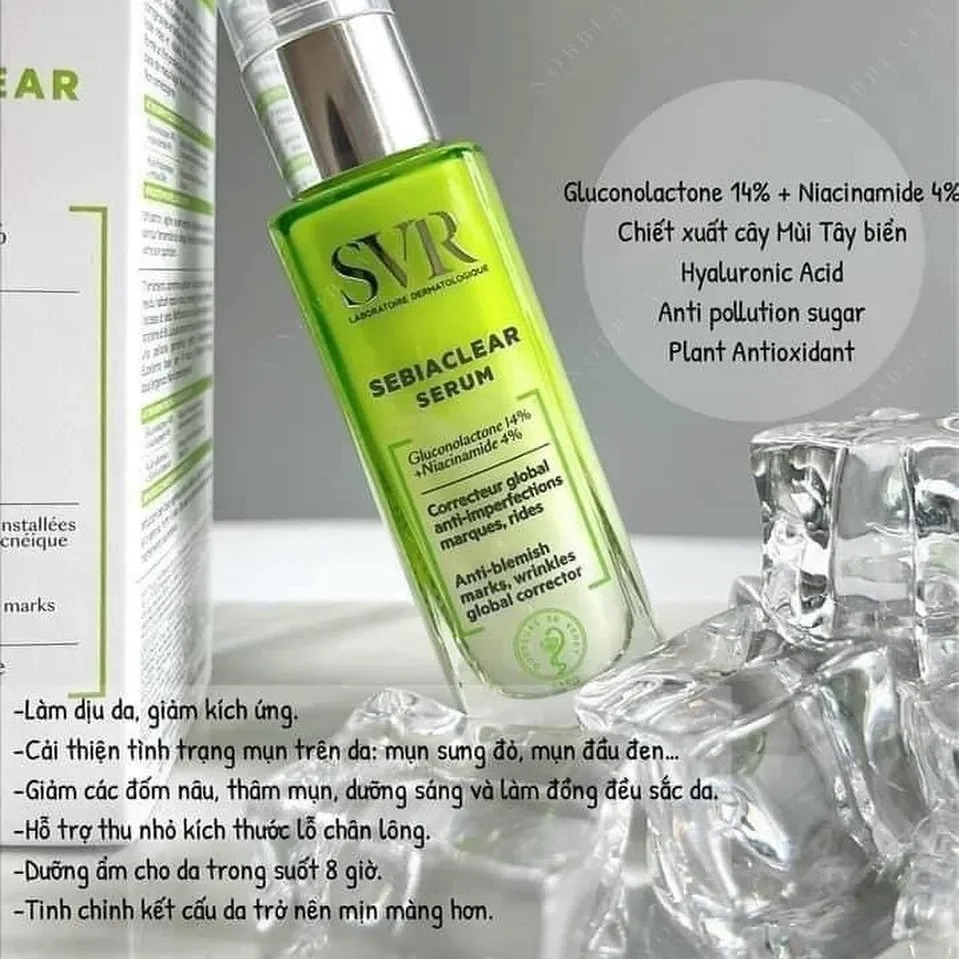 Tinh chất giảm mụn làm mờ thâm sạm và mềm mịn da SVR Sebiaclear Serum là tình chất dưỡng thuộc thương hiệu SVR có hoạt động hiệu quả trên làn da mụn và kết quả cải thiện hơn 7 ngày sử dụng nhờ công thức đặc biệt chứa các thành phần hữu hiệu với các vấn đề về mụn, giúp loại bỏ các đốm mụn, mụn đầu đen, lỗ chân lông và các thâm mụn, mang lại làn da sạch mịn khỏe khoắn