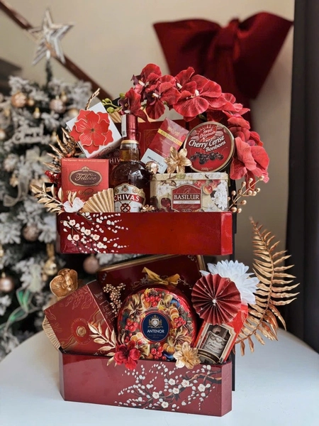 Set Quà Tết Sơn Mài ĐỎ 2 Tầng Chivas MS35