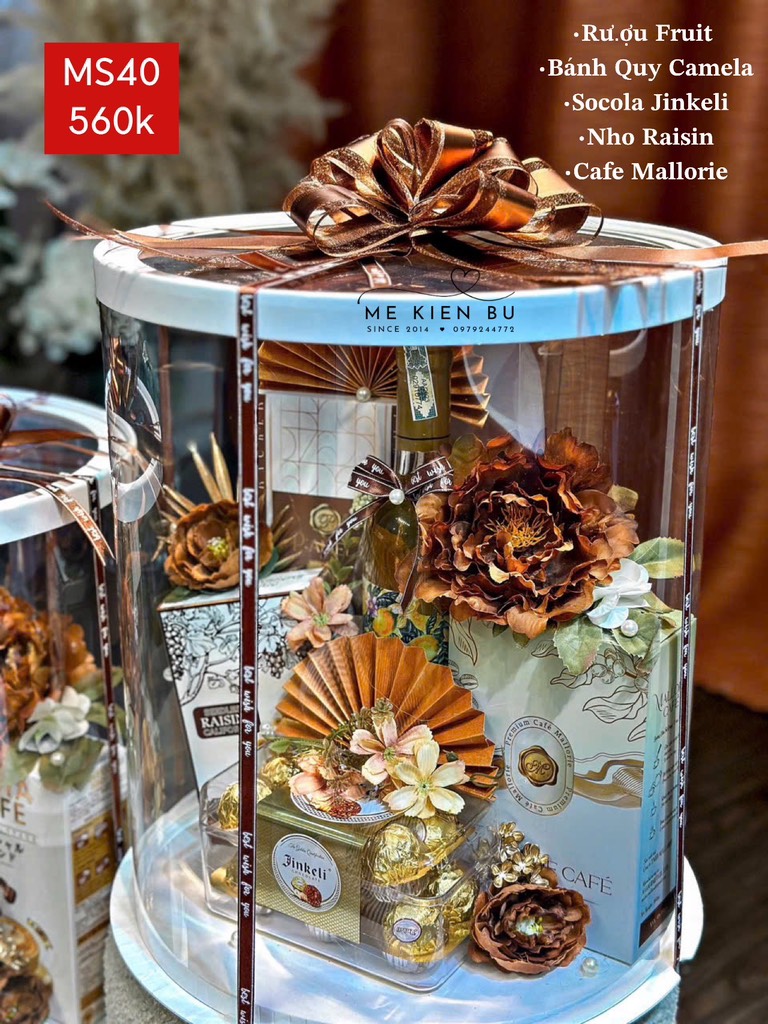 Set Qua Tết Trụ Mica Tròn Vàng MS40