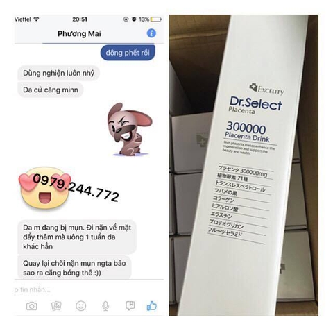 Đặc biệt, tinh chất nhau thai Dr Select Placenta có hàm lượng cao đến 300000mg nên khả năng phục hồi làn da rất nhanh chóng. Nó giúp làm đầy lớp đệm ở bề mặt da, làm cho những vùng da quanh mắt, quanh miệng nhăn nheo trở nên đầy đặn và căng mịn. Những sắc tố melanin ở lớp biểu bì da sẽ được phóng thích, làm mờ dần đốm nâu và đều màu da. Làn da sẽ trở nên căng mịn, hồng hào hơn.